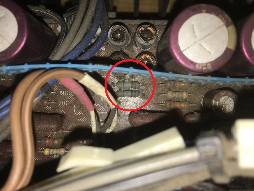 外した抵抗を測定してみると、1個は断線、2個目は1KΩと規定値(100Ω)とかけ離れています。