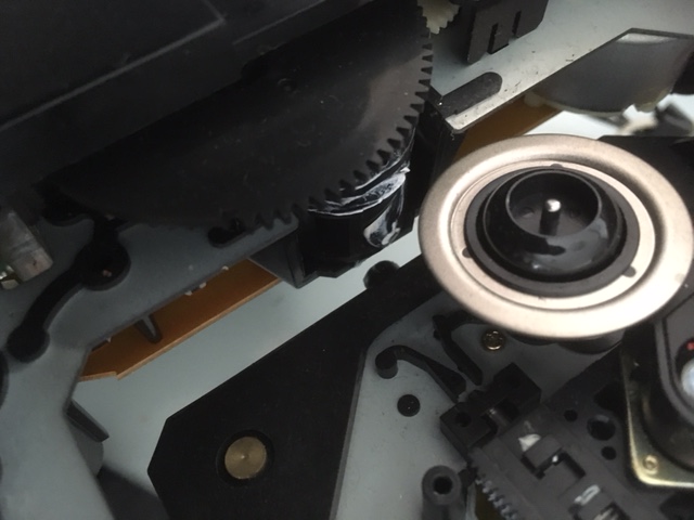 蓋を開けてCDをセットすると、ピックアップ部のエレベータが上がってきません。手で補助してやると動きました。